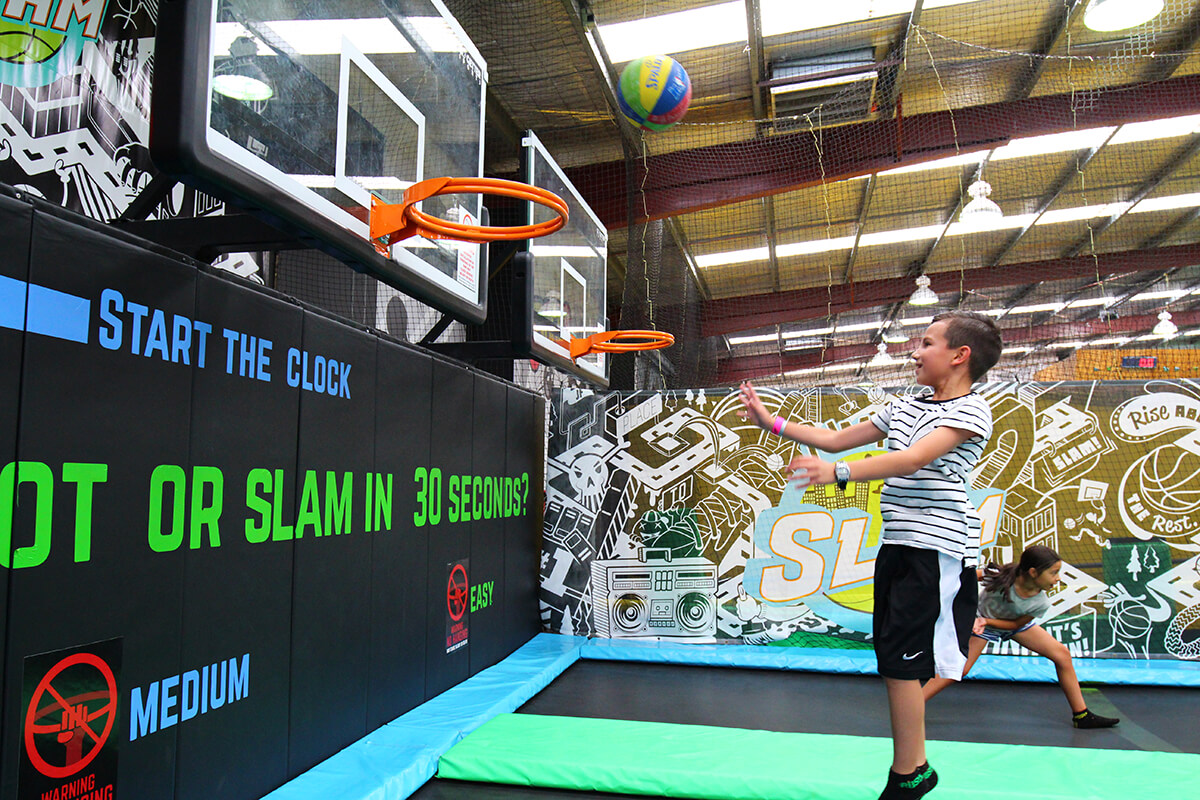 Over 110cms: Jump Factory Walk Wall (Performance Trampolines), Foam Pit Lanes, Slam Dunk Basketball, Dodgeball, Lower Level The Gauntlet, Mt Madness, Ninja.